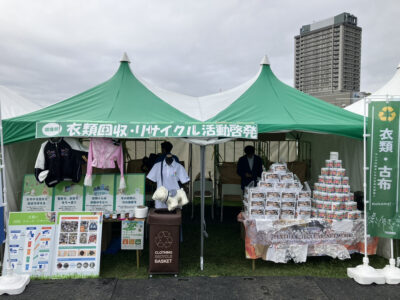 弊社のブースでは約300名の方にトイレットペーパーを配布したほか、38名の方に古着をお持ち込みいただきました。
